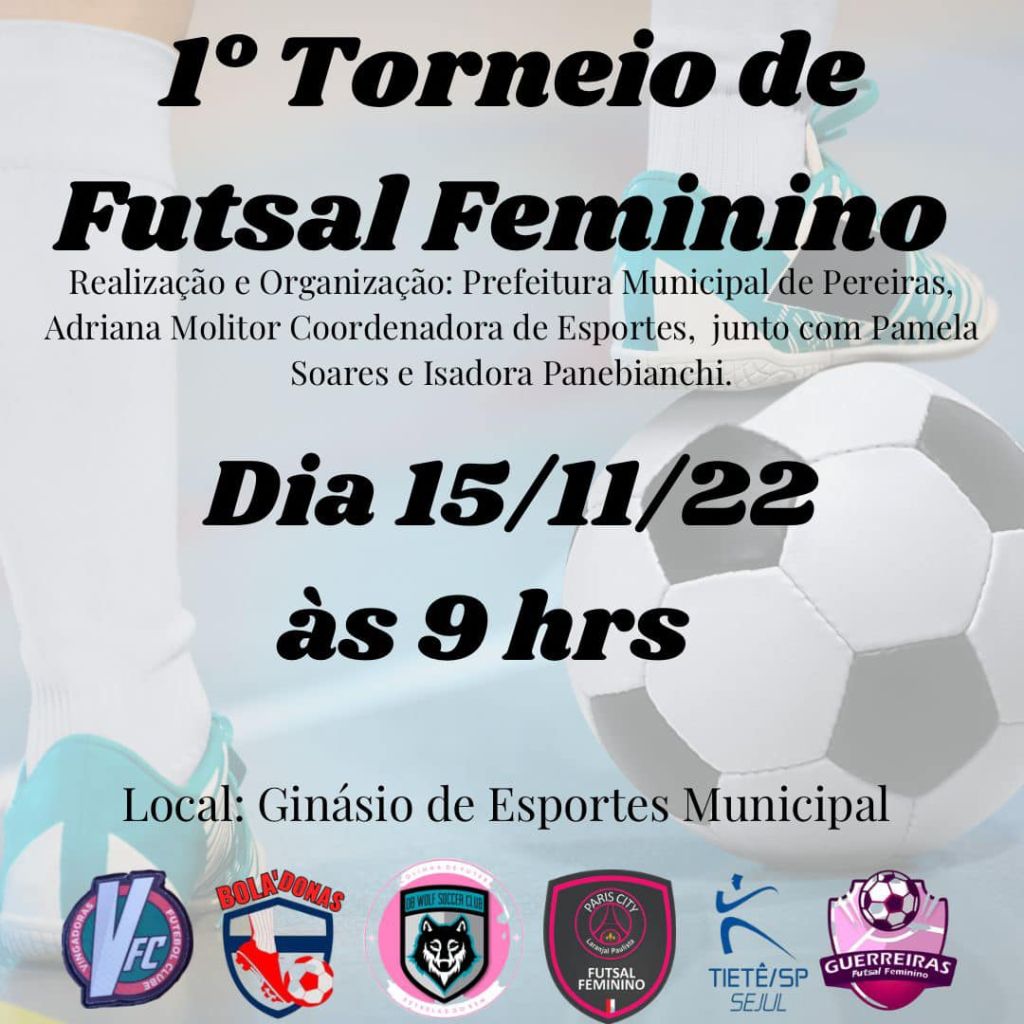 A prefeitura municipal está apoiando o 1º Torneio de Futsal Feminino. Uma iniciativa da coordenadora de esportes, Adriana Molitor, em parceria com as jogadoras Pamela Soares e Isadora Panebianchi.
