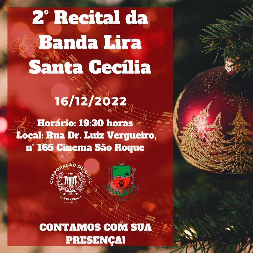 A tradicional banda Lira Santa Cecília irá se apresentar no dia 16 de dezembro em um recital para toda família.
