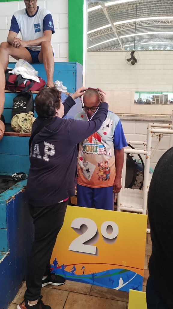 José Bispo Filho, atleta exemplar na categoria E (81 anos) nos 25 metros livre, garantiu o 2º lugar e, consequentemente, sua participação na final estadual que será realizada em São José do Rio Preto.