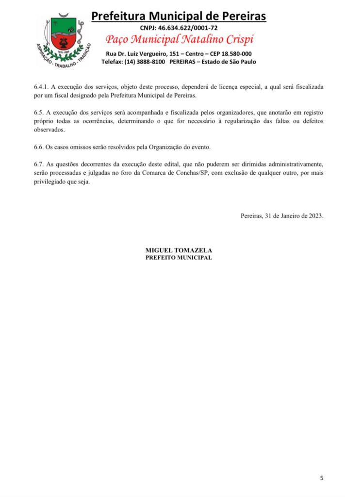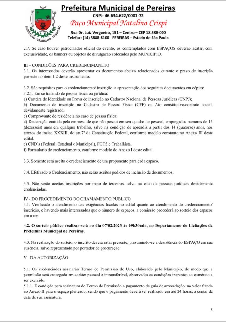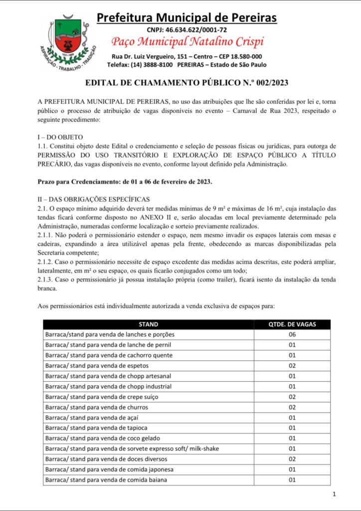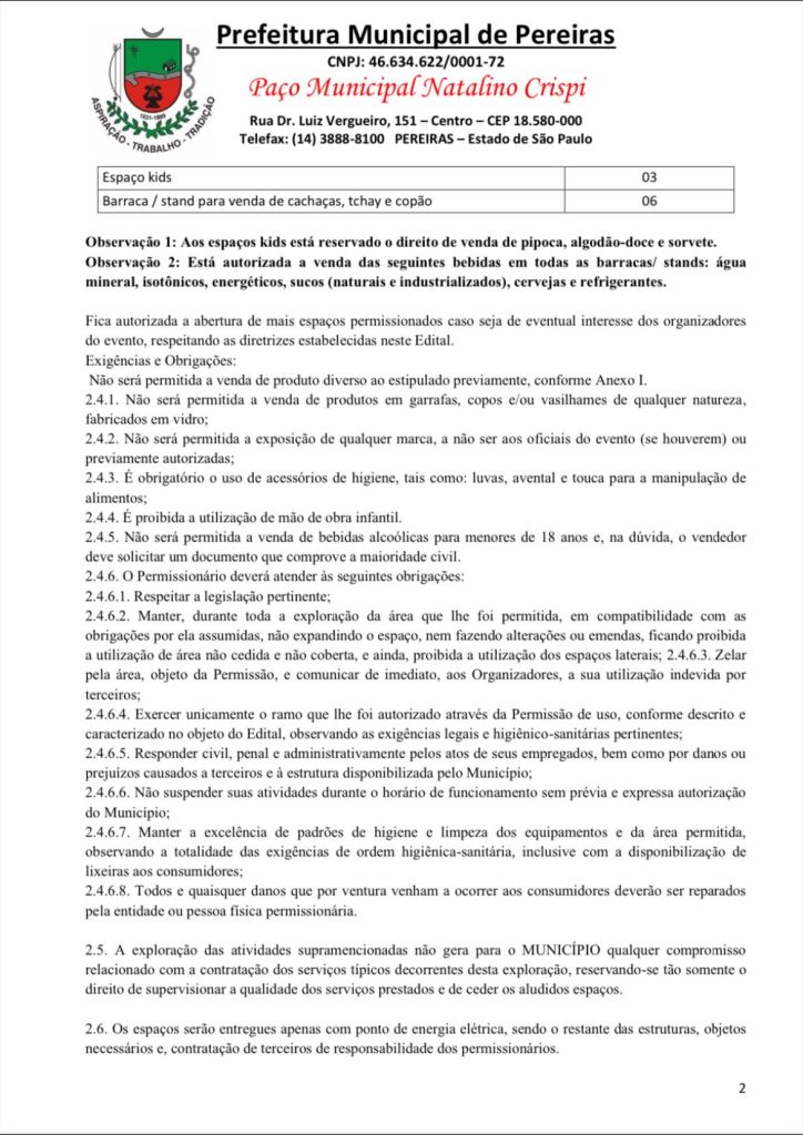 Se você está interessado em alugar um espaço no evento, procure a prefeitura municipal.