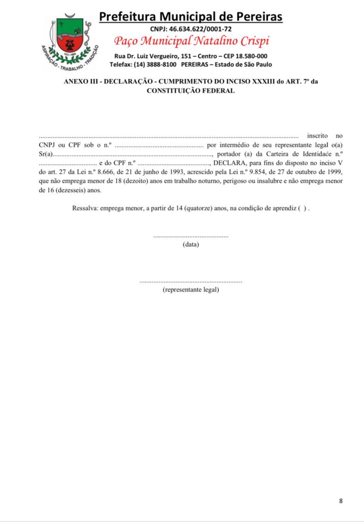 Observação: Todas as informações e dados necessários estão especificados nos documentos em anexo