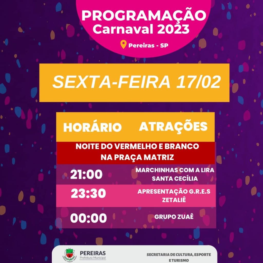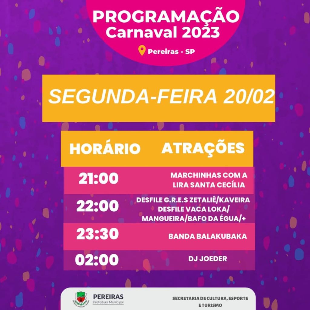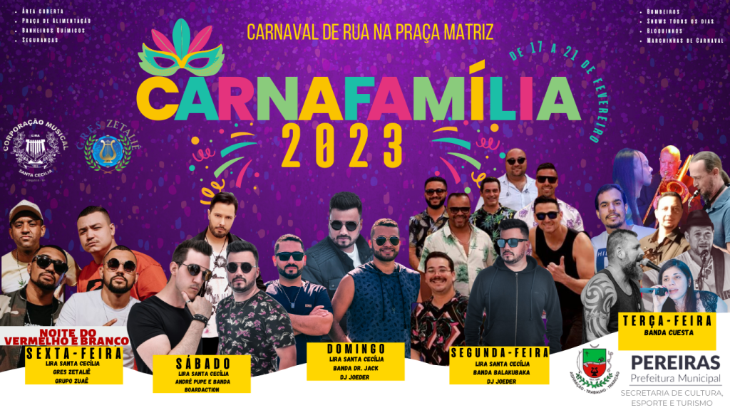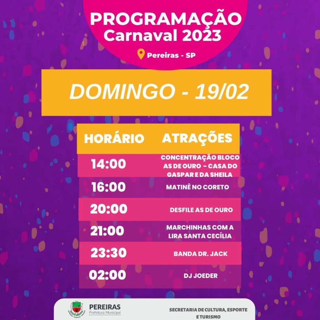 O que não falta é atividades para nossos municipes e visitantes aproveitarem a folia. Toda programação foi pensada com muito carinho para que pudéssemos proporcionar um carnaval divertido para toda familia.