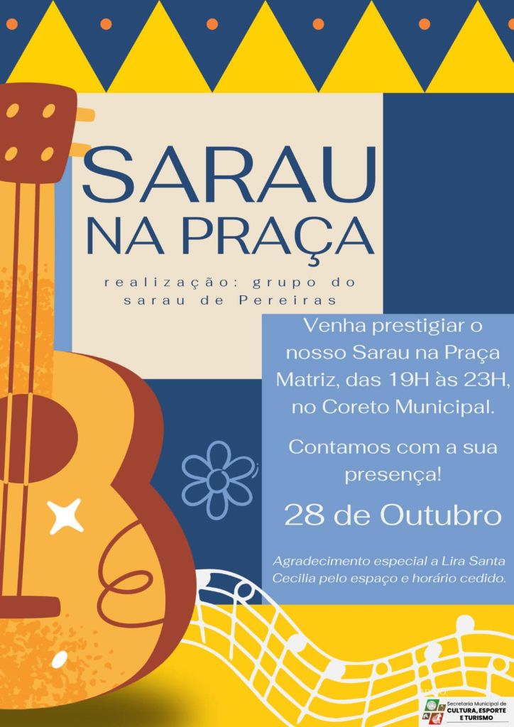 Realizado pelo grupo Sarau de Pereiras, o “Sarau na Praça” traz consigo muita musica e a tradicionalidade da nossa cidade!