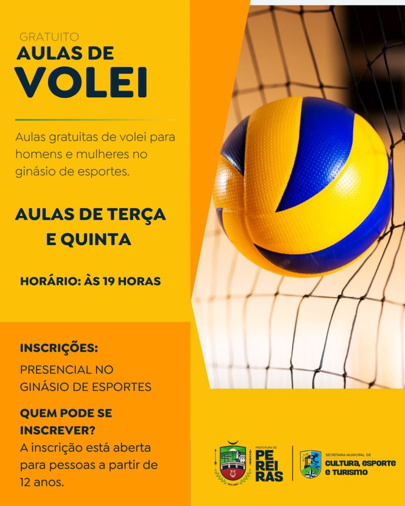 A Prefeitura de Pereiras, por meio da Secretaria de Cultura, Esporte e Turismo, dá início às aulas gratuitas de vôlei, uma nova oportunidade para incentivar a prática esportiva no município.