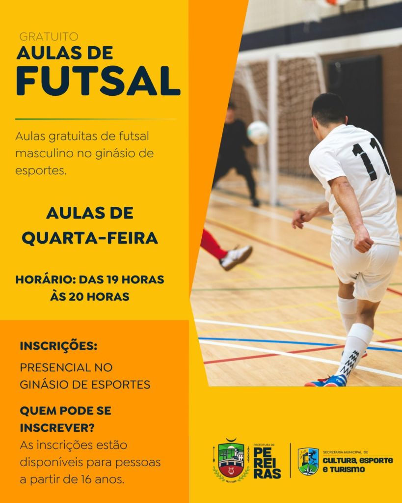 A secretaria de Cultura, Esporte e Turismo inicia as aulas de futsal para pessoas a partir de 16 anos.